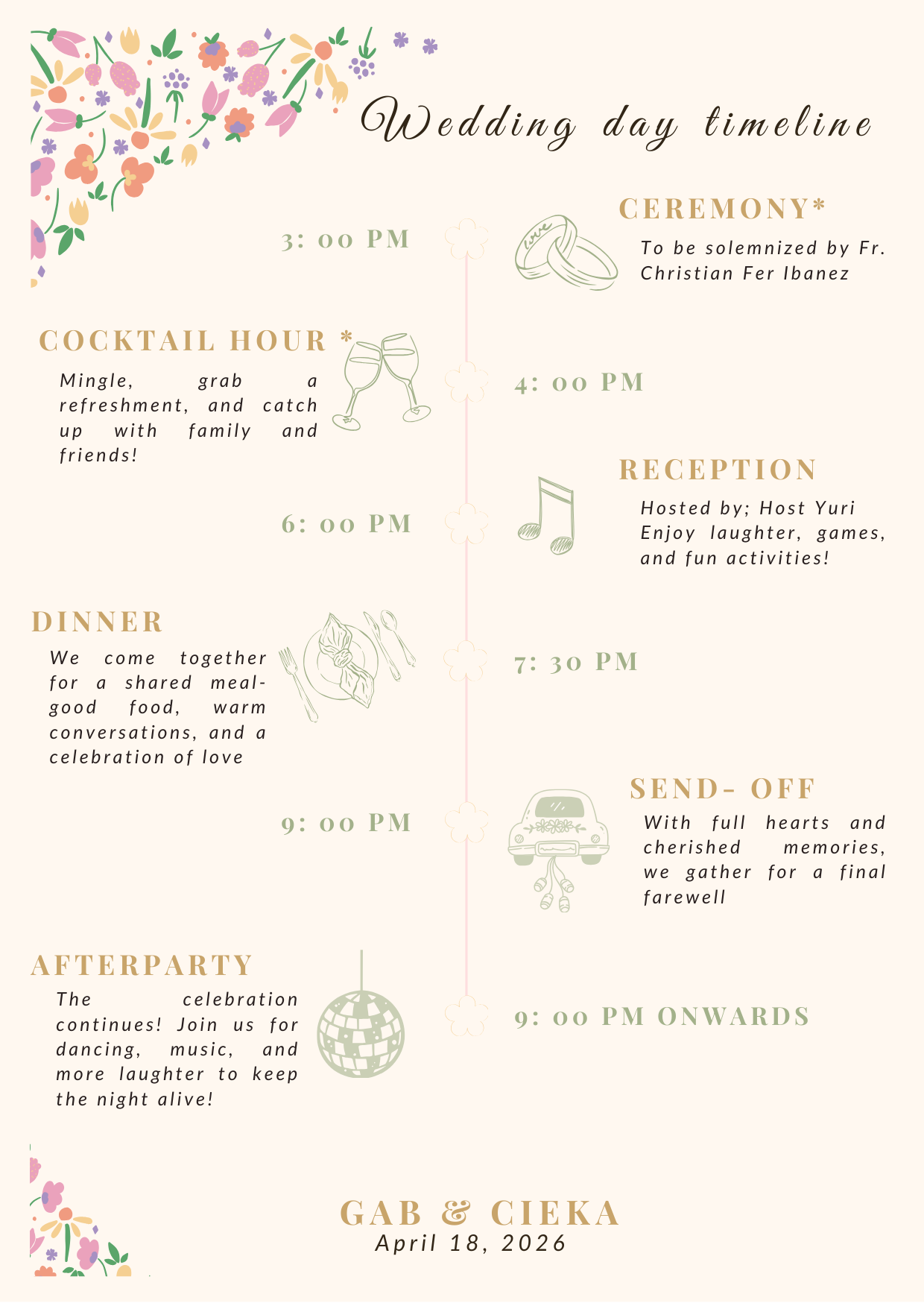 To help us keep the ceremony intimate and distraction-free, we humbly request that phones and cameras be put away, especially during the bridal entrance and exchange of vows.